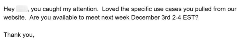 We use data-driven methods to find companies that match your ideal customer profile, based on the characteristics and pain points of your past customers. For example, Your perfect template could include reaching out to the VP of Marketing at companies with 50-100 employees who are hiring for a graphic designer and mention “wholesale” on their website.